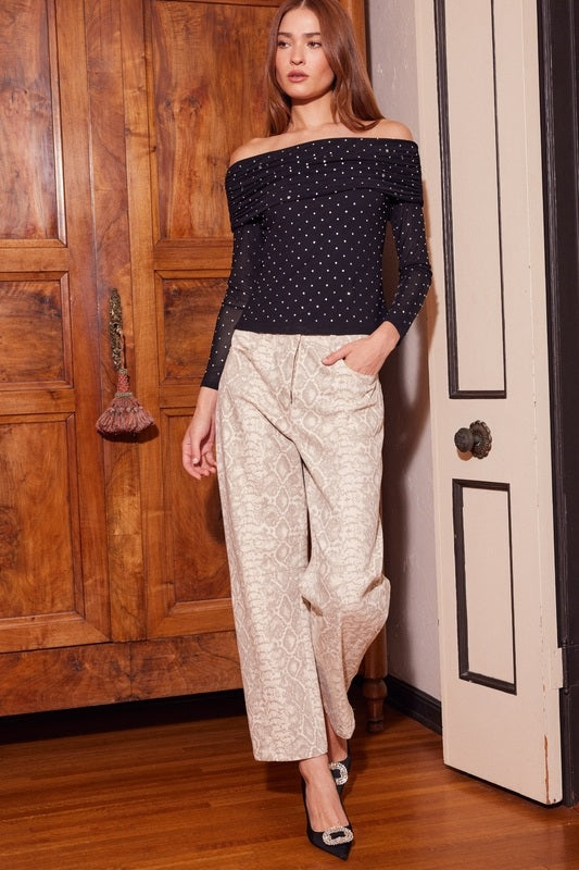These Cotton Twill Snake Print Barrel Pants offer a bold and trendy look with their distinctive snake pattern. Crafted from soft yet sturdy cotton twill, they provide comfort and durability for everyday wear. The barrel cut adds a modern silhouette, making them a versatile choice for stylish outfits.