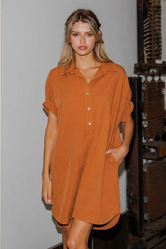 This Mini Shirt Dress features a soft mineral-washed finish that provides a relaxed, lived-in feel. Its classic shirt design offers effortless style and versatility for any casual occasion. Comfortable and easy to wear, it’s perfect for layering or wearing on its own.