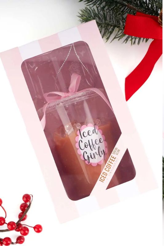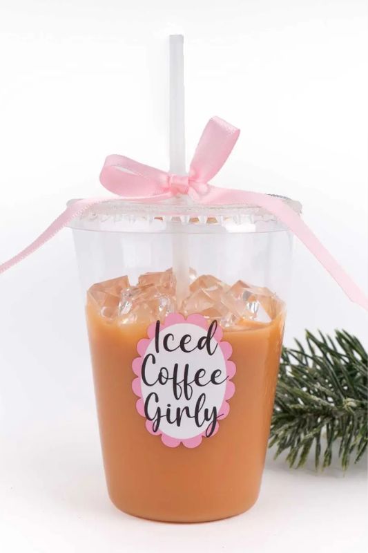 Add a fun, modern twist to your holiday décor with our hand-painted glass ornament shaped like a cup of takeout iced coffee. Featuring a cheeky sticker that reads “Iced Coffee Girly” and topped with a festive pink bow, this ornament is brimming with charm and personality. Complete with a metallic string for easy hanging, it’s perfect for coffee lovers, brunch enthusiasts, or anyone who enjoys whimsical, Instagram-worthy holiday décor. A playful keepsake, this ornament is sure to become a favorite on your tree year after year.