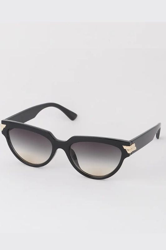 These Cat Eyed Sunglasses feature a chic gold-lined frame that adds a touch of elegance to any outfit. With approximate dimensions of 2 x 5.8 inches, they provide a comfortable and flattering fit. Stylish and functional, they offer both sun protection and a fashionable statement.
