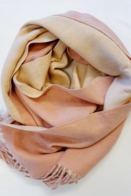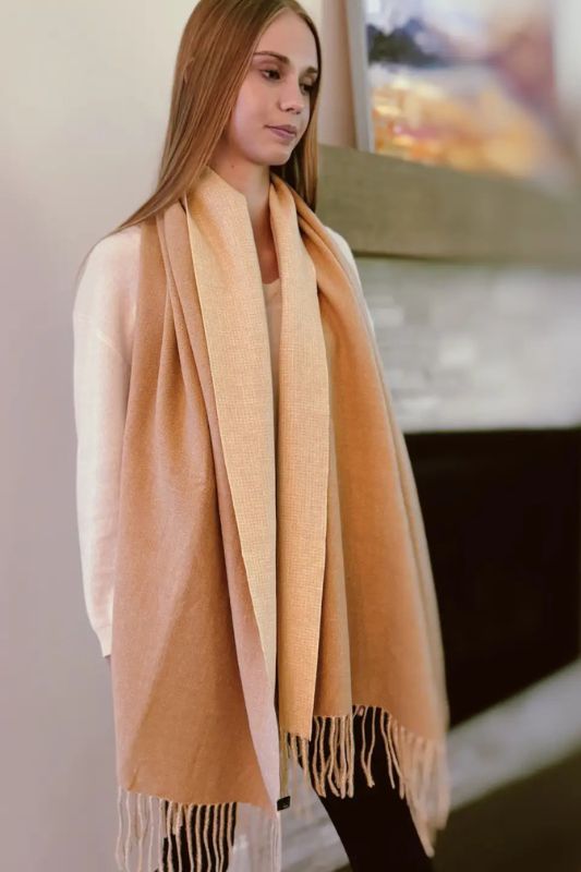 This Double Sided Reversible Scarf is a must-have for any individual. Its minimalist design adds a touch of elegance to any outfit, while the light fringes on the ends provide a subtle yet stylish detail. With its reversible feature, you can effortlessly switch up your look.