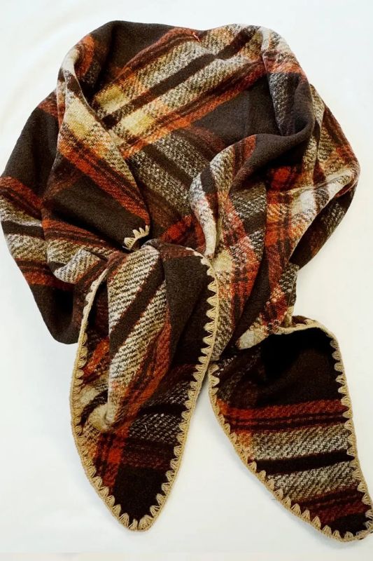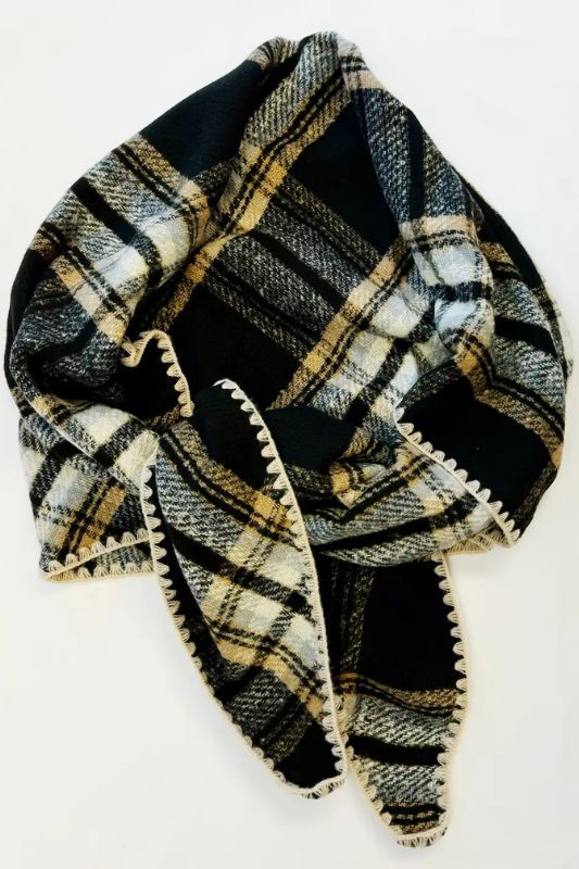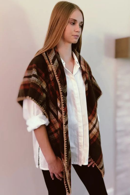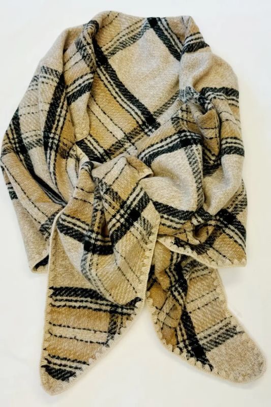 Introducing the Precious Plaid Triangle Shawl Scarf, a classic accessory with a modern twist. The neutral colors and vibrant accents create a versatile look that can be dressed up or down. Stay stylish and warm with this timeless piece.