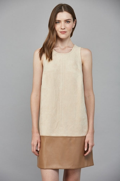 Fate Contrast Faux Leather Hem Sleeveless Suede Shift Dress Fate