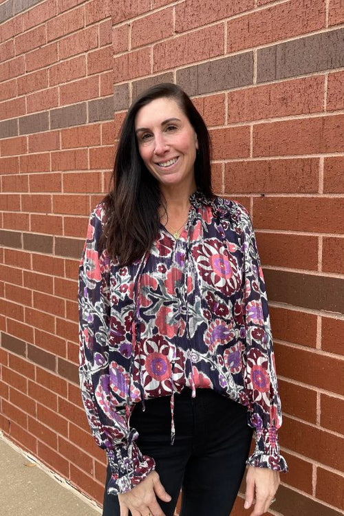 Fate Front Tie Ruffled V-Neck Long Sleeve Top Fate