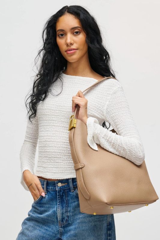 Effortless elegance meets practical design in this chic hobo bag. Its textured exterior and refined silhouette make it a go-to accessory for both work and weekends. Designed with an interior pouch for seamless organization, this bag effortlessly holds your essentials while offering a polished finish. Perfectly balanced for comfort, it features a stylish strap that drapes beautifully over your shoulder. Versatile enough for day-to-night transitions, this is the handbag that complements your dynamic lifestyle with ease.