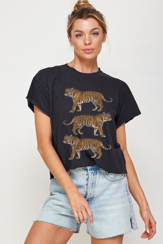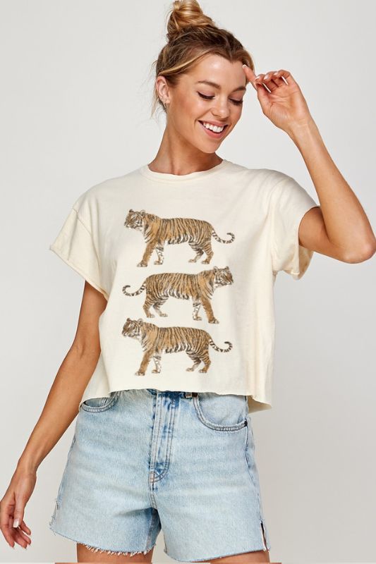 Embrace vintage-inspired style with this handmade crop top, featuring a striking tiger graphic that captures boho charm and retro flair. The double-layer neck design adds durability and a refined finish, while the cropped silhouette flatters modern wardrobes. Perfect for layering or wearing solo, this one-of-a-kind piece blends artisanal craftsmanship with timeless aesthetic appeal.