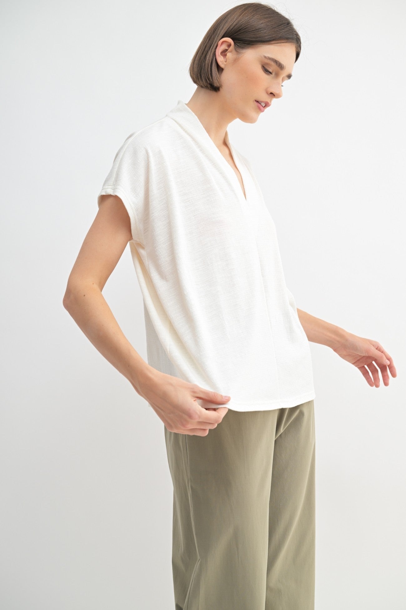 V Neck Slub Knit Top