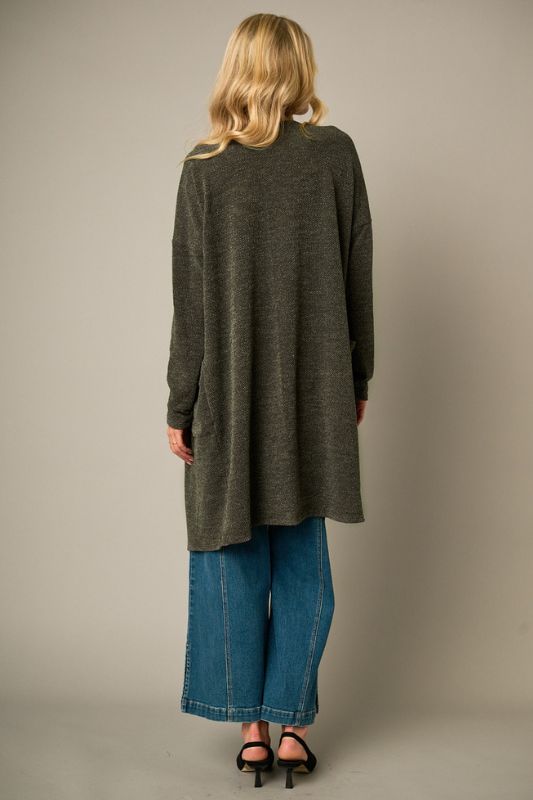 Wrap yourself in cozy comfort with this waffle texture hacci knit cardigan, designed with an open front and long sleeves for effortless layering. Practical side pockets keep your essentials within reach, while the extended length provides coverage and a polished silhouette. Perfect for transitional seasons or as a spa-inspired layering piece that pairs beautifully with any outfit.