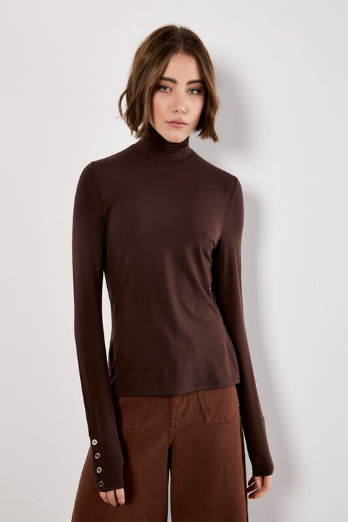 Apricot Lyocell Turtle Neck Button Cuff Top Apricot
