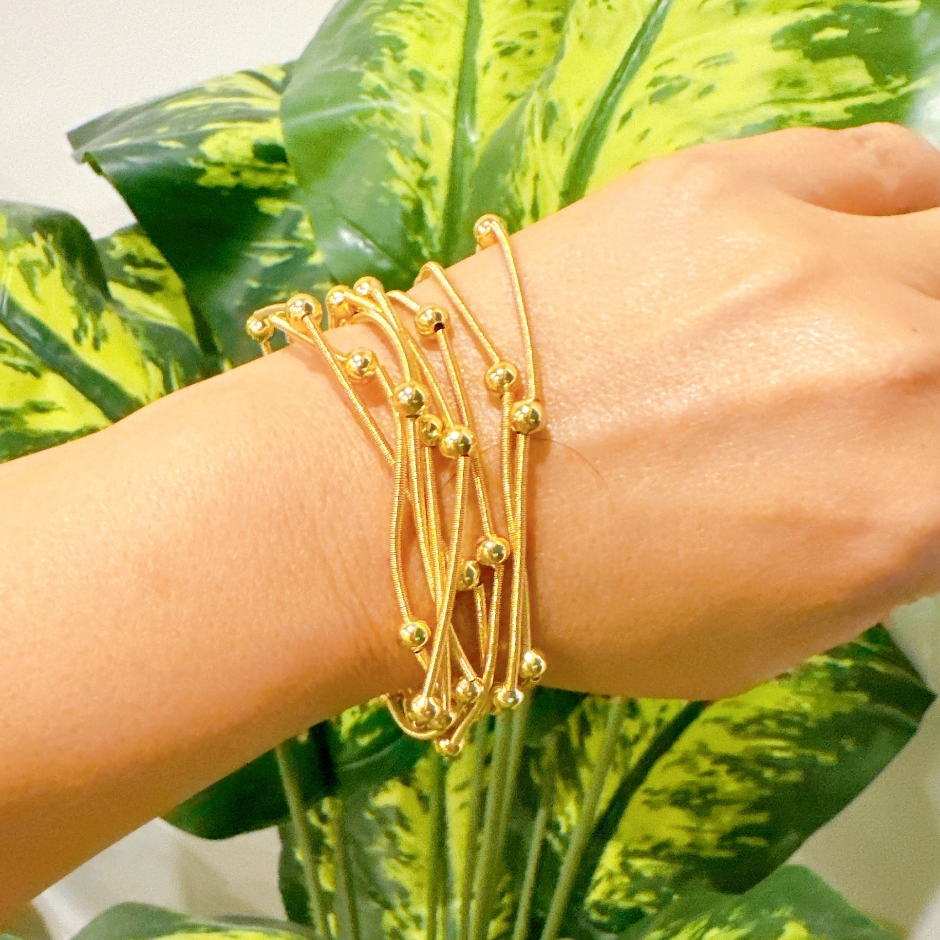 Dimensions: Approximately 3" diameter before stretch 18k gold plated Lead and nickel free.