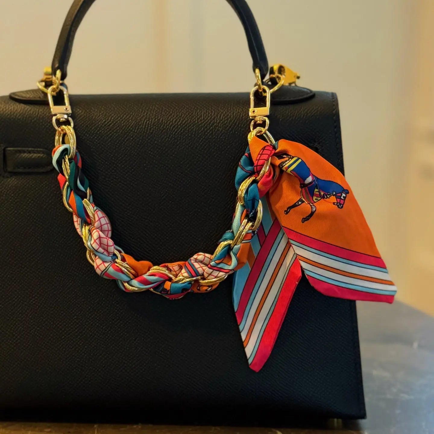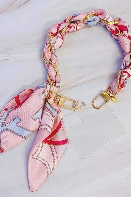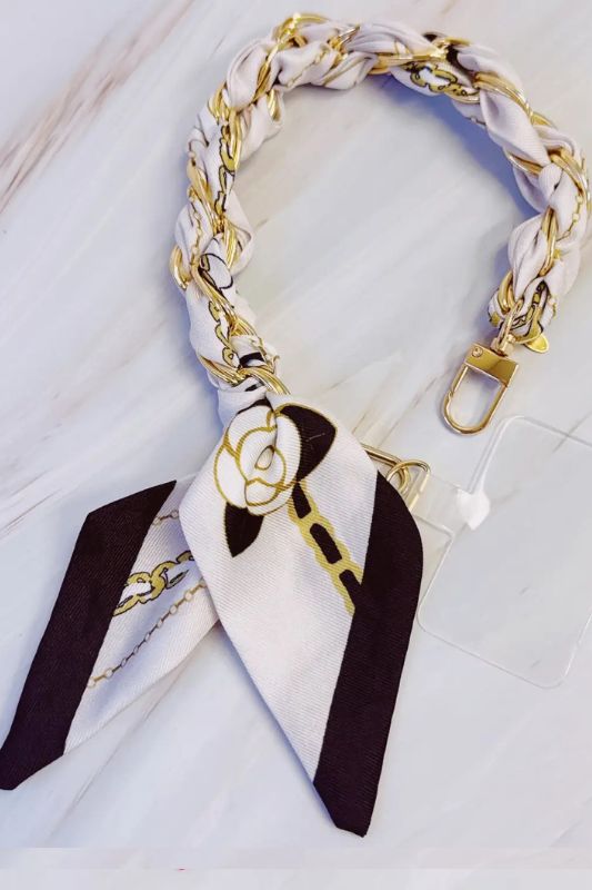 Bring style and function together with the Braided Scarf Chain Phone Lanyard. Featuring a chic braided scarf design intertwined with a sleek chain, this versatile accessory keeps your phone secure while adding a fashionable touch to any outfit.