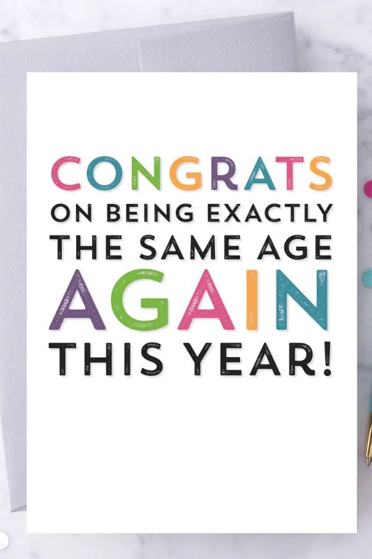 "Congrats on Being the Same Age AGAIN This Year!" greeting card