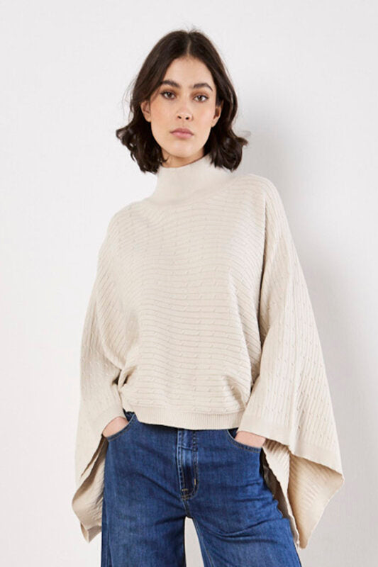Get ready to add some fun to your wardrobe with our Horizontal Cable Cape Jumper! This quirky jumper not only features a unique horizontal cable design, but it also serves as a cozy cape, perfect for those chilly days. Say goodbye to boring sweaters and hello to playful style!