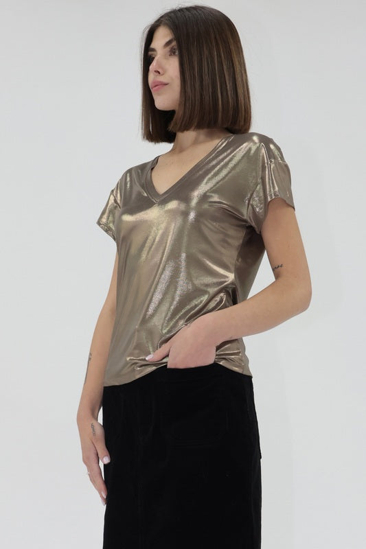 Shine bright like a diamond in our Lumi top! With a relaxed fit and metallic v-neck, this top adds a touch of glamour to any outfit. Get ready to turn heads and be the center of attention with this quirky and playful piece.