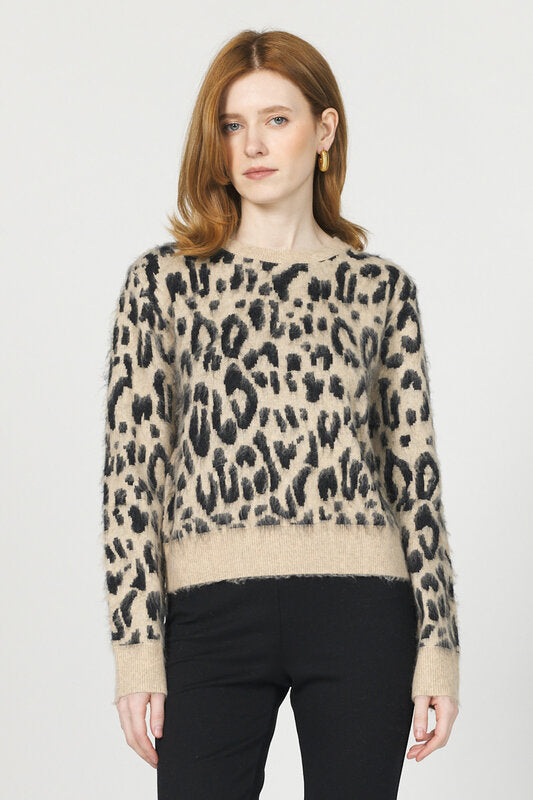 Unleash your wild side with Mina, the Longsleeve Leopard Print Sweater. Keep cozy and make a statement with this playful and stylish piece. Perfect for any occasion, show off your unique style and channel your inner fashionista. Roar in confidence with Mina.