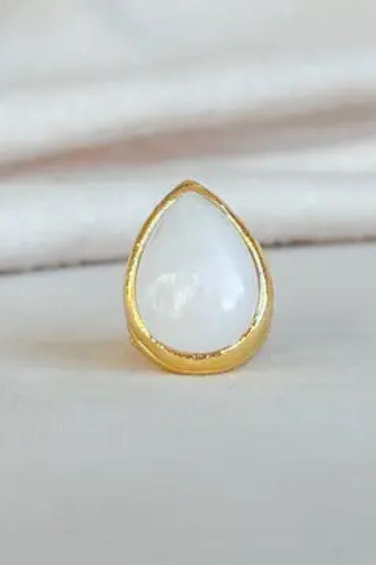 Elevate your everyday look with this stunning Tear Drop Ring. Crafted from 18k gold, this exquisite piece features a delicate tear drop-shaped white stone that adds a touch of elegance to any outfit. The adjustable design ensures a perfect fit for any finger, making it a versatile addition to your jewelry collection. Whether worn alone or stacked with other rings, this timeless piece is sure to make a statement.