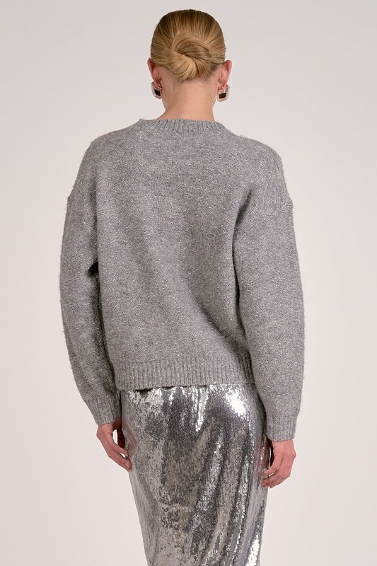 Bring on the sparkle with this Offset Sequin Bow Sweater — where cozy meets full-on fabulous! A statement-sized sequin bow shimmers off to one side, giving this soft, sparkle-threaded knit a touch of playful drama. With its classic crew neckline and flattering, easy fit, it’s the kind of sweater that instantly turns an ordinary outfit into something extra-special.
