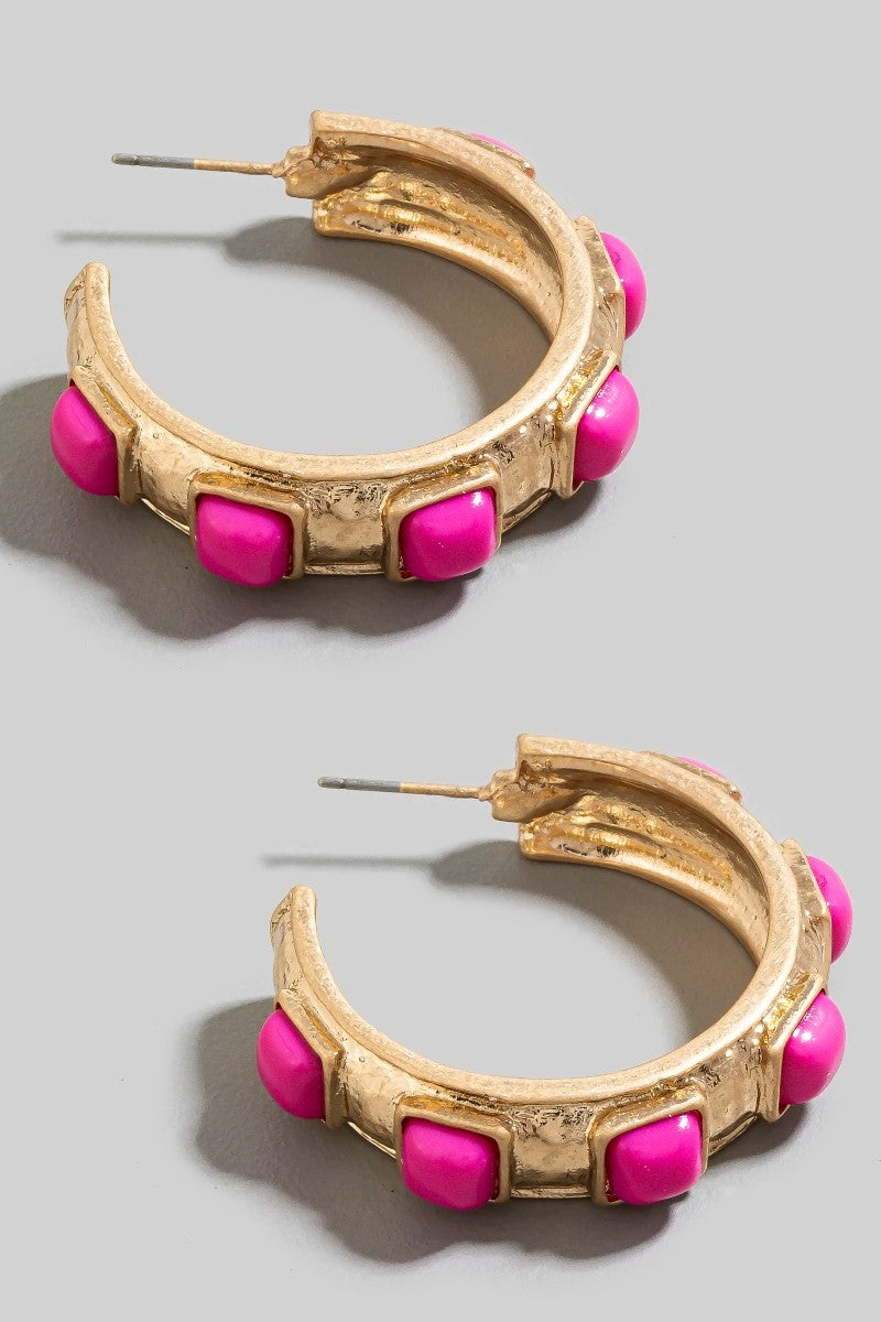This pair of hoop earrings brings a stunning square acrylic set station style. Witness the perfect fusion of style and functionality as this pair of hoop earrings effortlessly complements your lifestyle.