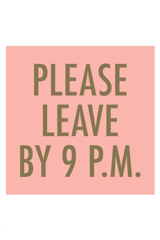 Please Leave By 9PM - Funny Paper Cocktail Napkins 20 ct 3 ply These bright humor themed paper cocktail napkins are perfect for tabletop decoration. These party napkins are soft and absorbent and help in cleaning stains and spills with great ease. You can use these funny paper napkins for any gathering or party. The fun design on the napkins makes them a fit for any occasion. Great gift for any wine loving hostess, friend, family member or co worker.
