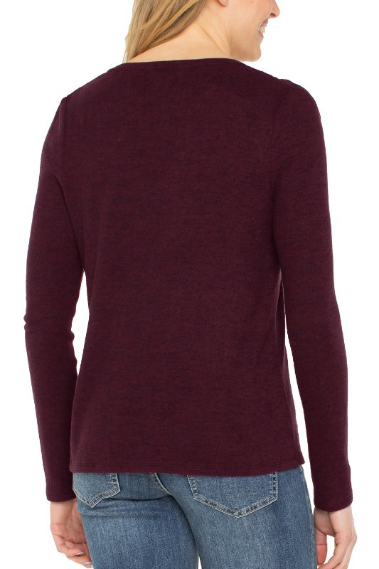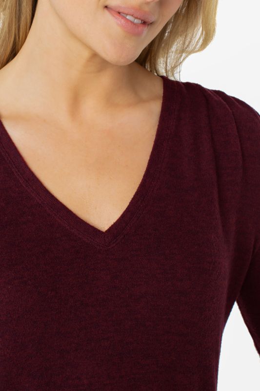 Add a touch of style and comfort to your wardrobe with our Long Sleeve v neck Knit Top W. Shirring. Perfect for any occasion, this top features a flattering V-neckline and stylish shirring detail, giving you a unique and fashionable look. Stay warm and chic all season long!