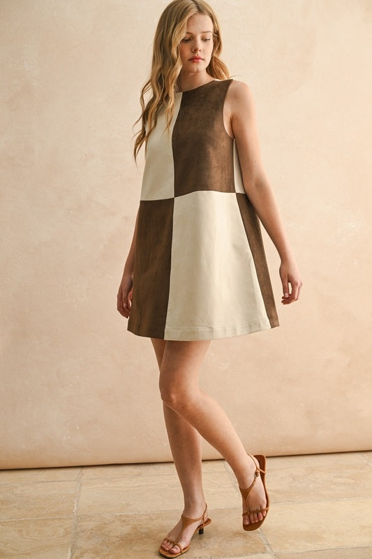 Suede Color Contrasted Shift Dress