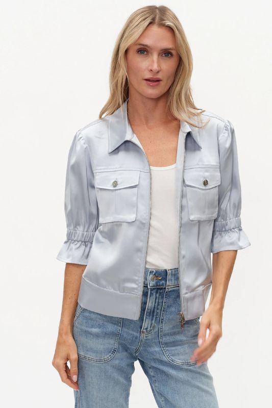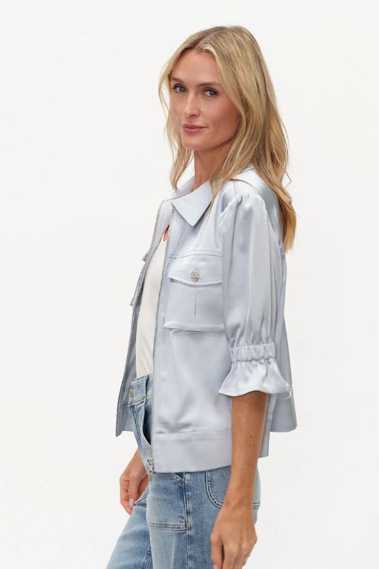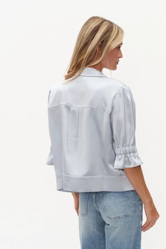 The Anna Jacket brings effortless elegance to your everyday wardrobe. Crafted from luxurious satin, this lightweight piece features a classic collar and charming puffed sleeves that add a touch of sophistication without the weight. Transition seamlessly from day to night in this versatile essential.