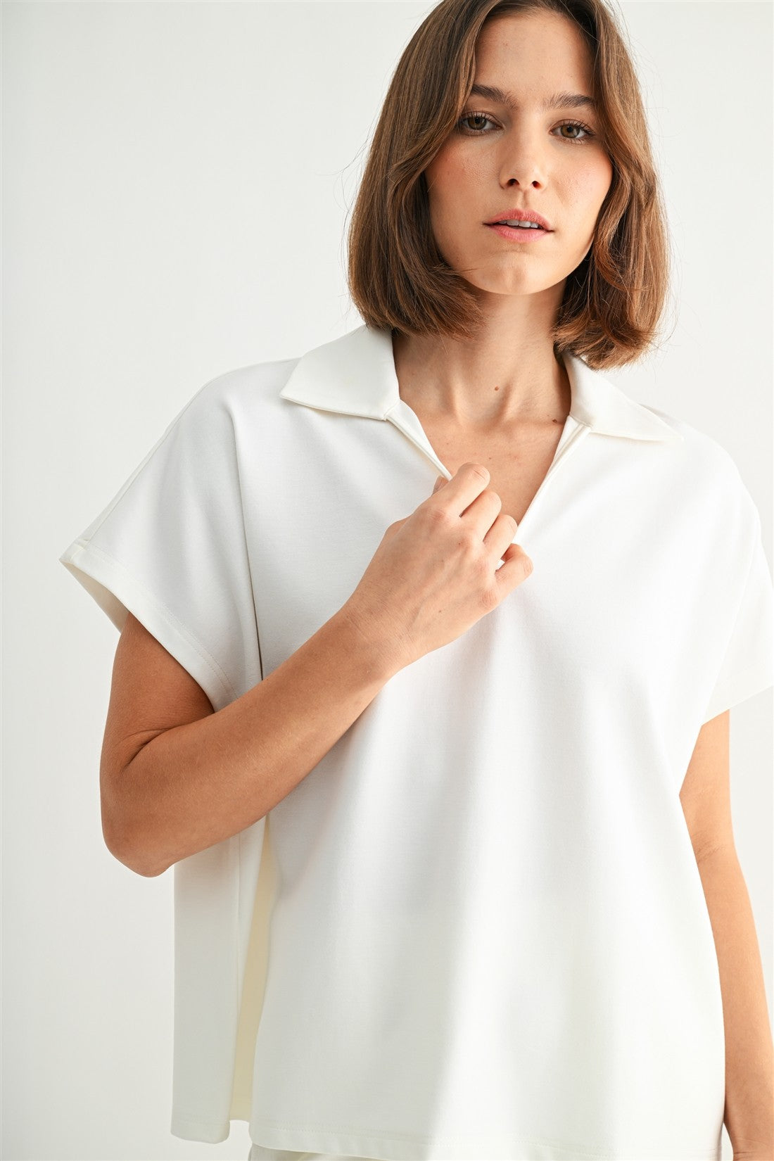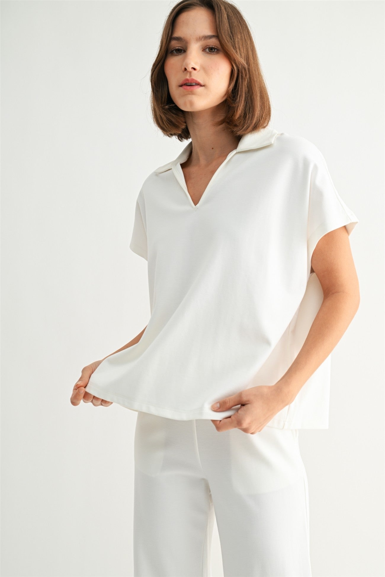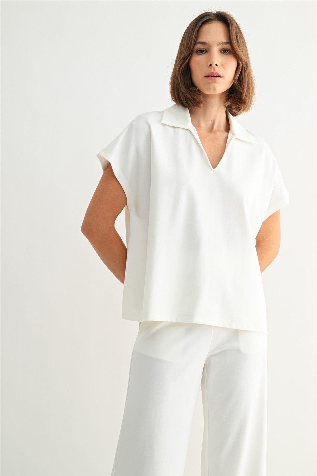 Effortlessly elevate your everyday wardrobe with this versatile Wide Shoulder Collared Knit Top. The soft, luxurious knit fabric drapes beautifully across relaxed shoulders, while the classic V-neck creates a flattering silhouette that works for any occasion. Layer it over basics or wear solo for an instantly polished look. Perfect for those who value comfort without compromising on style.