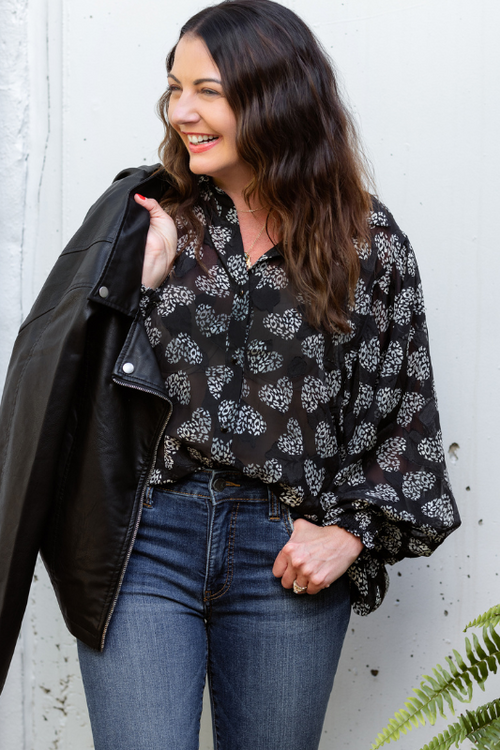 ee:some Sheer Floral Printed Long Sleeve Blouse ee:some
