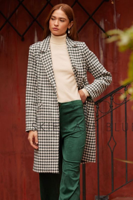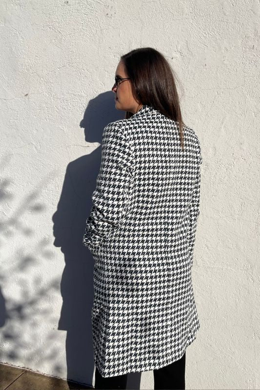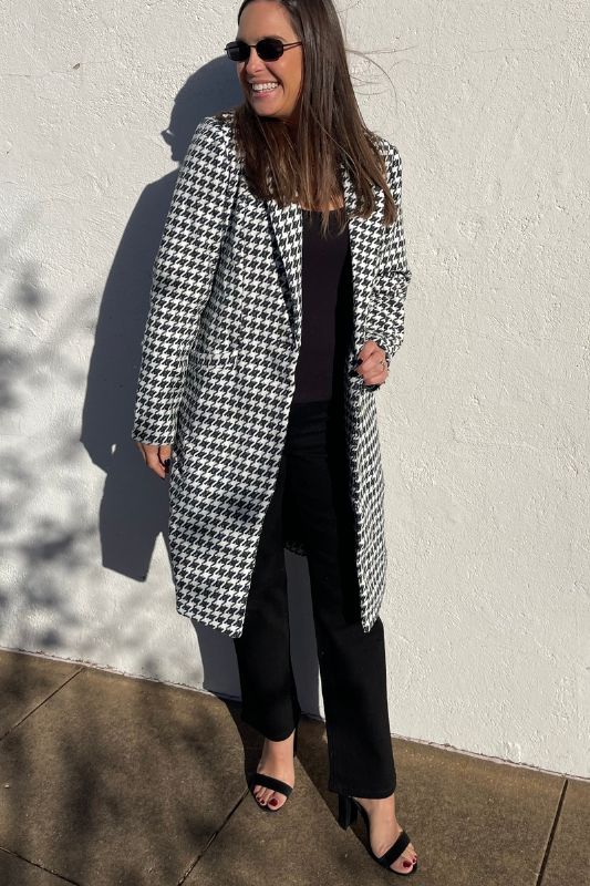 Elevate your winter wardrobe with this timeless houndstooth long sleeve coat, a classic piece that seamlessly transitions from season to season. The iconic pattern and structured silhouette offer versatile styling options for both casual and polished occasions. An essential layering piece that combines enduring style with practical warmth.