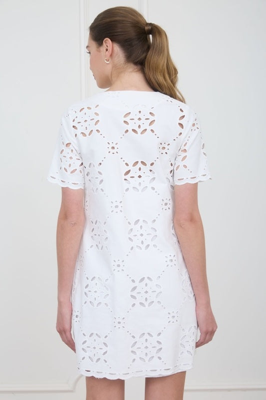 This Short Sleeve Punch Out Dress offers a stylish blend of comfort and detail with its delicate punch-out design. The breathable fabric and short sleeves make it perfect for warm weather or layering. Elevate your wardrobe with a dress that pairs subtle texture with effortless wearability.