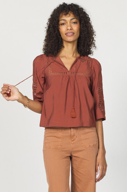 Get ready to turn heads with our Samaya top! The embroidered front tie adds a touch of elegance, while the long sleeves keep you cozy. Perfect for a day out or a night in, this top will elevate any outfit. (Tie-dye not included)