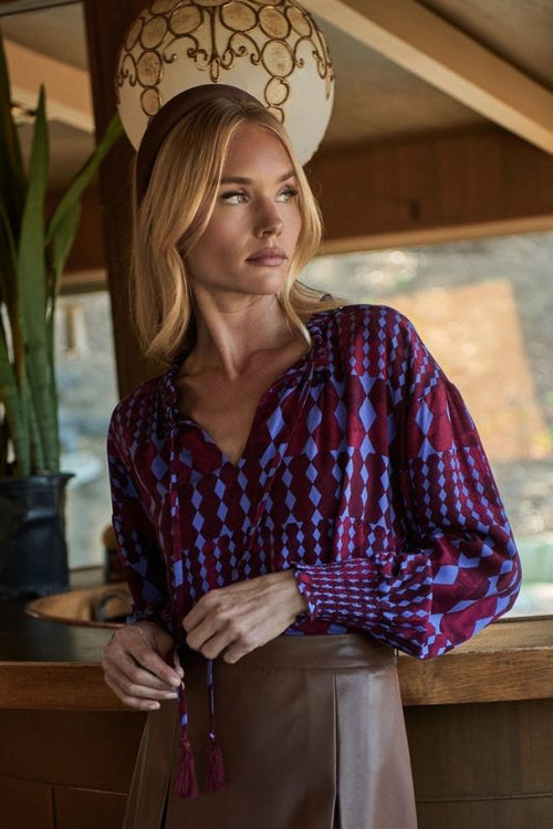 SUGARLIPS Ramsay Abstract Weylin Split Neck Tassel Blouse SUGARLIPS