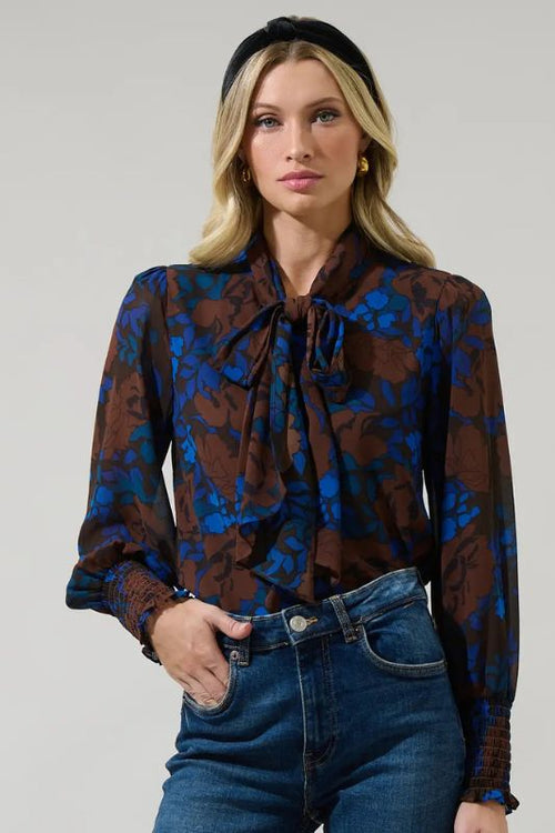 SUGARLIPS Lebanon Floral Etienne Tie Neck Long Sleeve Blouse SUGARLIPS