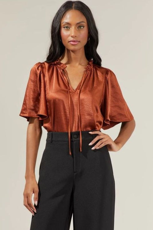 SUGARLIPS Angela Satin Tie Neck Flutter Sleeve Blouse SUGARLIPS