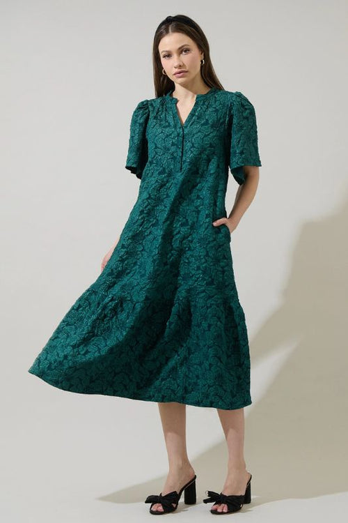 SUGARLIPS Arielle Jacquard Floral Ely Midi Dress SUGARLIPS