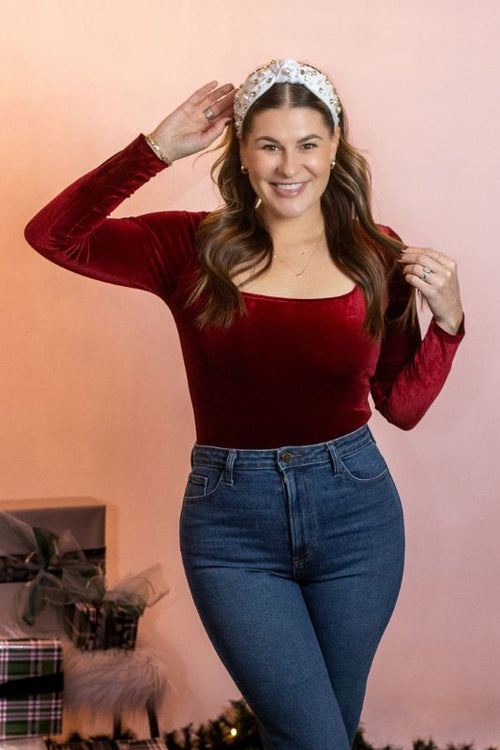 Grade & Gather Crinkled Velvet Mock Neck Top Grade & Gather