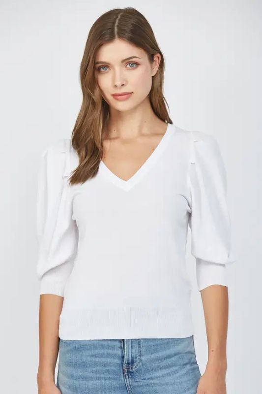 Puff Sleeve V-Neck Sweater