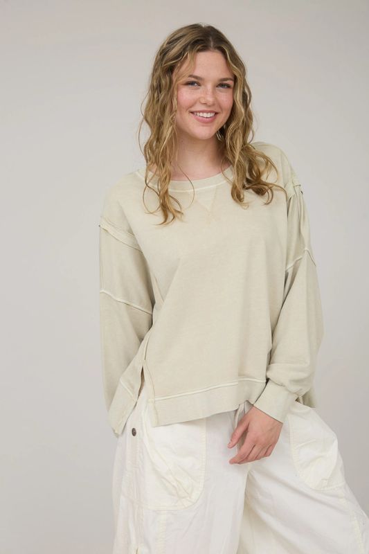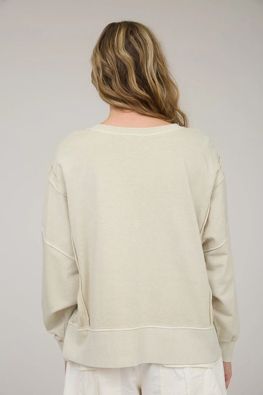 This acid-washed knit top combines contemporary design with effortless style, featuring extended shoulders that create a relaxed, fashion-forward fit. Intricate patchwork detailing and long sleeves offer texture and depth, while the natural color variations from the washing process ensure every piece is distinctly unique. Perfect for layering or wearing solo, it's a versatile essential that bridges casual comfort with curated sophistication.