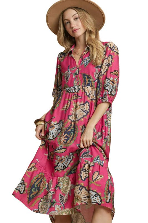 Umgee Boho Paisley Tiered Midi Dress Umgee