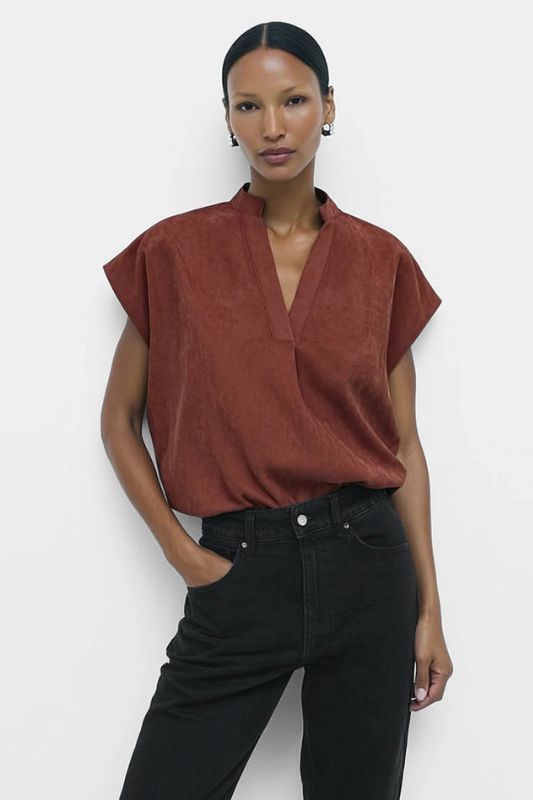 Women's Soft Matte Drop Shoulder Blouse Relaxed drop shoulder silhouette for that effortless drape. Matte finish woven fabric with a soft hand-feel. Designed to pair seamlessly with tailored trousers or easy denim.
