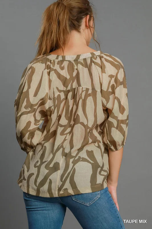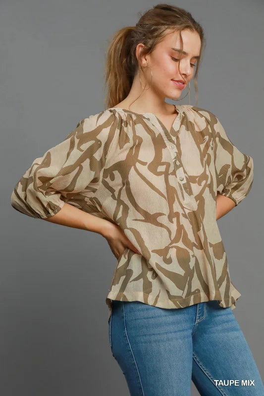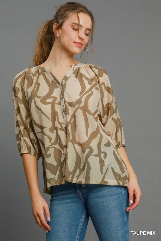 This Two Tone Abstract Print Top combines artistic flair with modern style for a standout look. Its unique dual-tone design adds visual interest, making it a versatile choice for both casual and dressy occasions. Crafted for comfort, it effortlessly elevates your wardrobe with minimal effort.