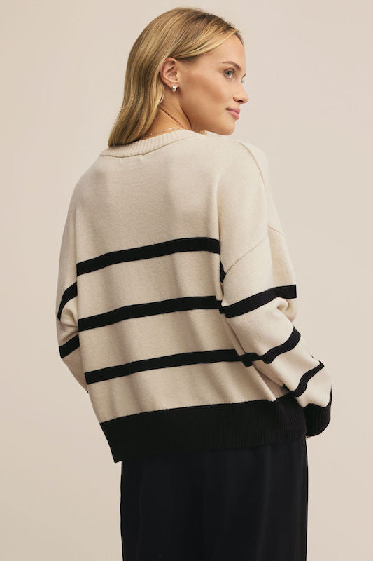 Stay effortlessly stylish in the Z Supply Jordane Striped Sweater. Featuring a classic crew neck and long sleeves, this sweater offers cozy comfort with ribbed detailing on the neck, cuffs, and hem for a perfect fit. Its timeless striped pattern adds a touch of sophistication to any outfit, making it an essential piece for your wardrobe. Perfect for layering or wearing on its own, this sweater combines comfort and style seamlessly.