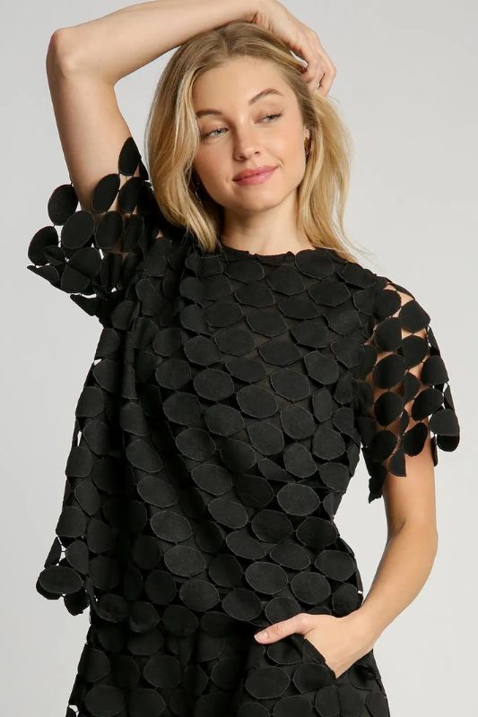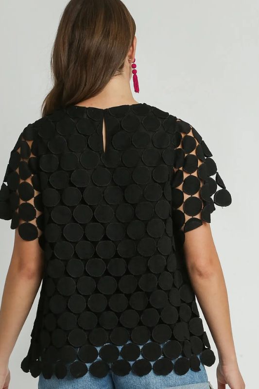 Elevate your everyday wardrobe with this charming polka dot lace top, featuring delicate short sleeves and a feminine silhouette perfect for layering or wearing solo. The intricate lace detailing adds sophistication and texture, making it an effortless choice for both casual outings and dressed-up occasions. Versatile and timeless, this piece pairs beautifully with jeans, skirts, or trousers for a polished look that transitions seamlessly from day to night.