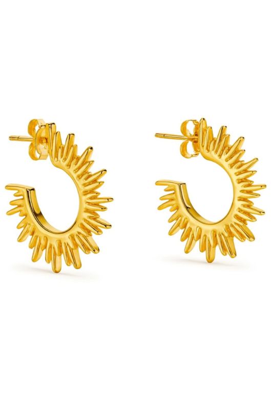 Bring a touch of golden radiance to your look with the Small Sunburst Hoop Earrings. Featuring a sculpted sunburst design that catches the light from every angle, these hoops balance bold texture with refined elegance — perfect for adding a warm, sophisticated glow to any outfit.